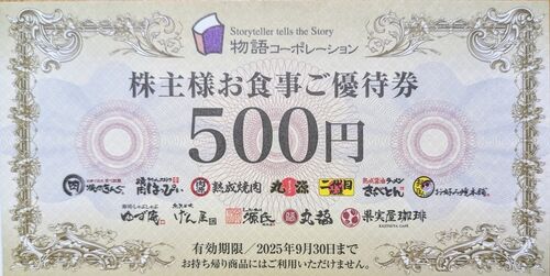 ◆目次◆ 今週届いた株主優待 物語コーポレーション(3097) ~株主優待券 3,500円分~ ジャパンクラフトホールディングス(7135) ~株主優待券 3,000円分~ 【関連記事】 丸善CHIホールディングス(3159)~株主優待券 500円分~ 【関連記事】 隠れ優待 プロパスト…