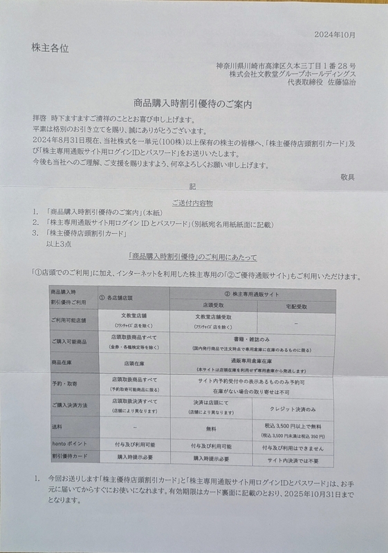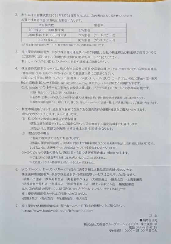 「今週届いた株主優待 ~文教堂グループHD(9978)、いちごホテルREIT(3463)~」